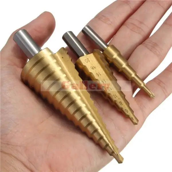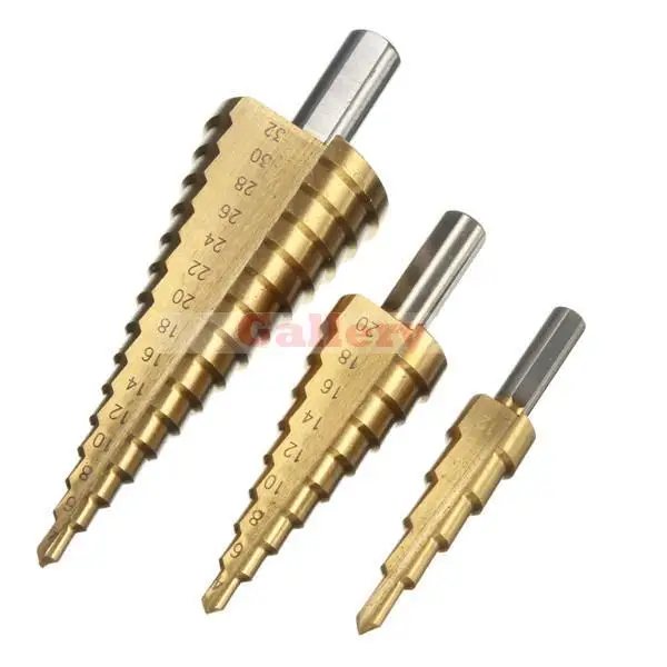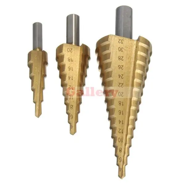 HOT Sale 2 Sets Lot 3pcs Hss Step Drill Pagoda Ladder Round Shank 4-12 4 20/4 32 Bit 12 Drill Bit
