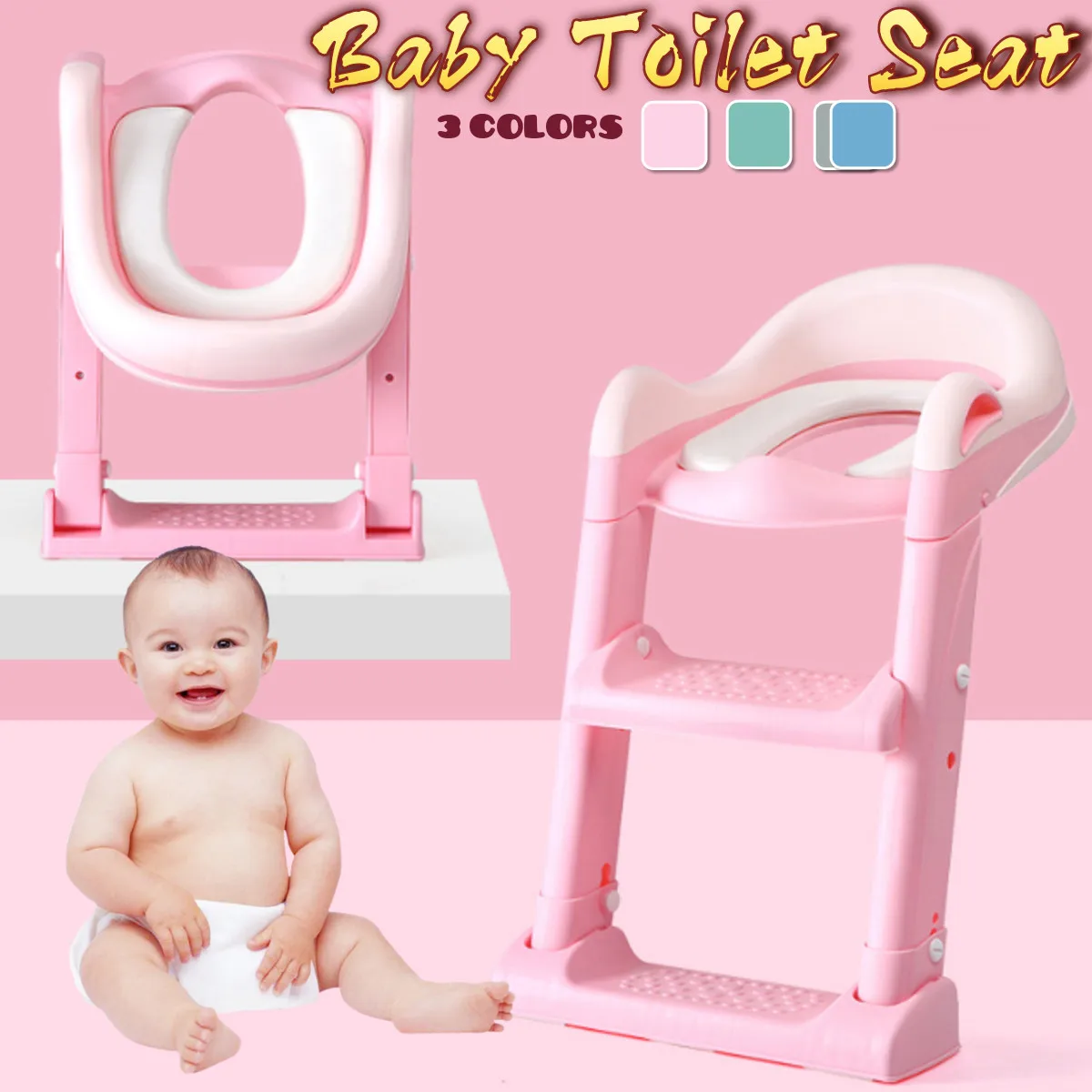 BEST QUALITY Folding Baby Potty Infant Kids Toilet Training Seat with Adjustable Ladder Portable Urinal Potty Tr