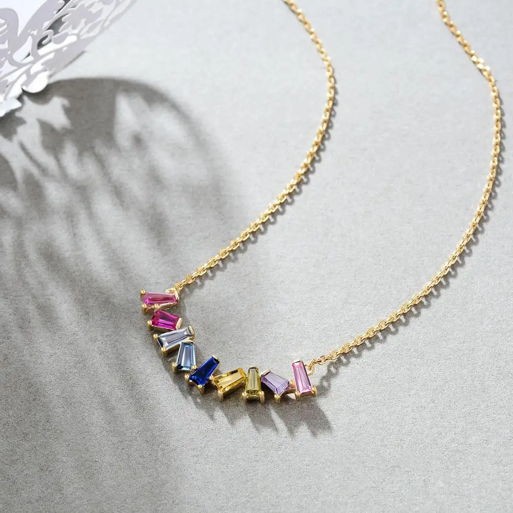 Hot Sale E Jewelry 925 Sterling Silver Rainbow Pendant Necklaces for Women Girls 14K Gold Plated Colorful Ch