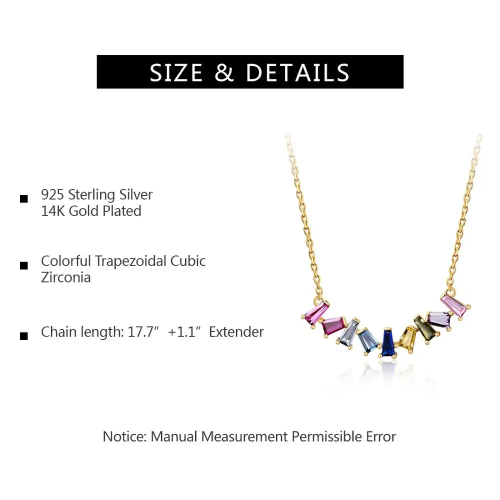 E Jewelry 925 Sterling Silver Rainbow Pendant Necklaces for Women Girls 14K Gold Plated Colorful Ch