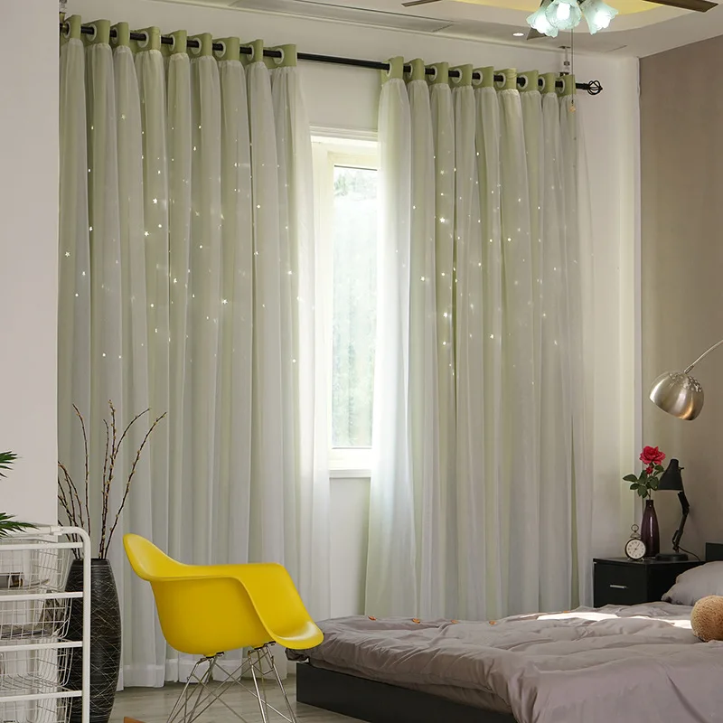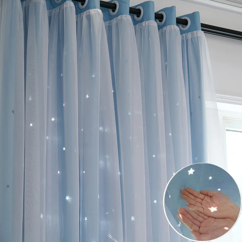 Hollow Star Thermal Insulated Blackout Curtains for Living Room Kids Bedroom Window Curtain Blinds