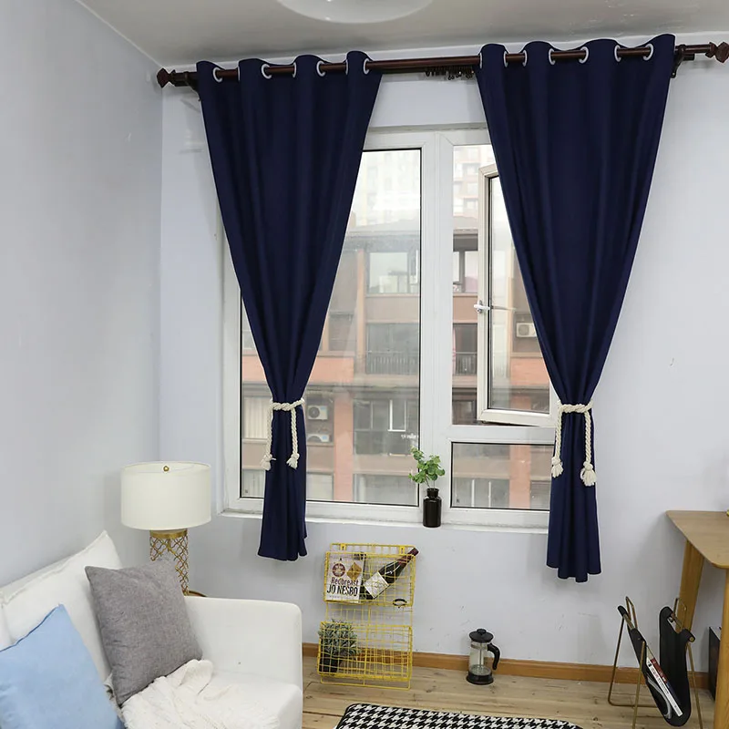 Cotton Curtains For Living Room Bedroom Half Blackout Short Curtains American Style 55*85in Solid N