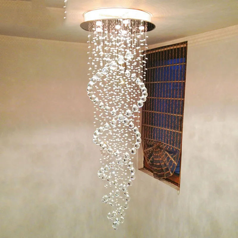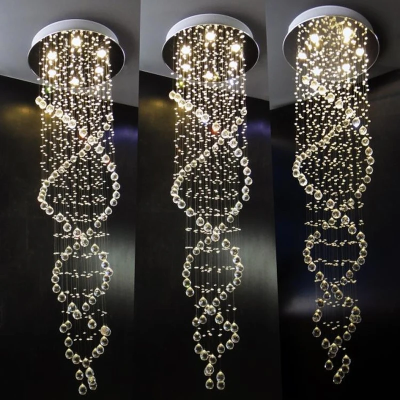 Spiral LED Crystal Chandelier LED Chrome Finished Light Luxury Crystal Lamp Hanging Interior Ladder