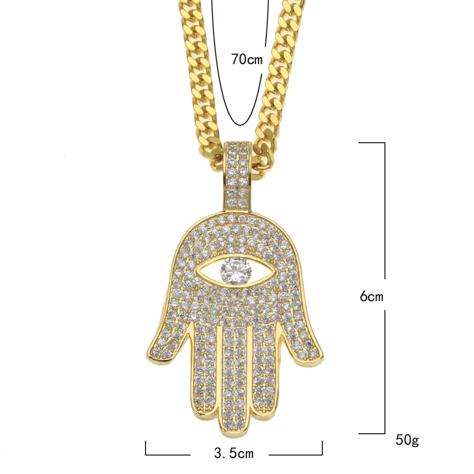BEST UWIN Iced Zircon Hamsa Hand Pendant Copper Material Gold Silver Fatima Palm Pendants Necklace Hip H